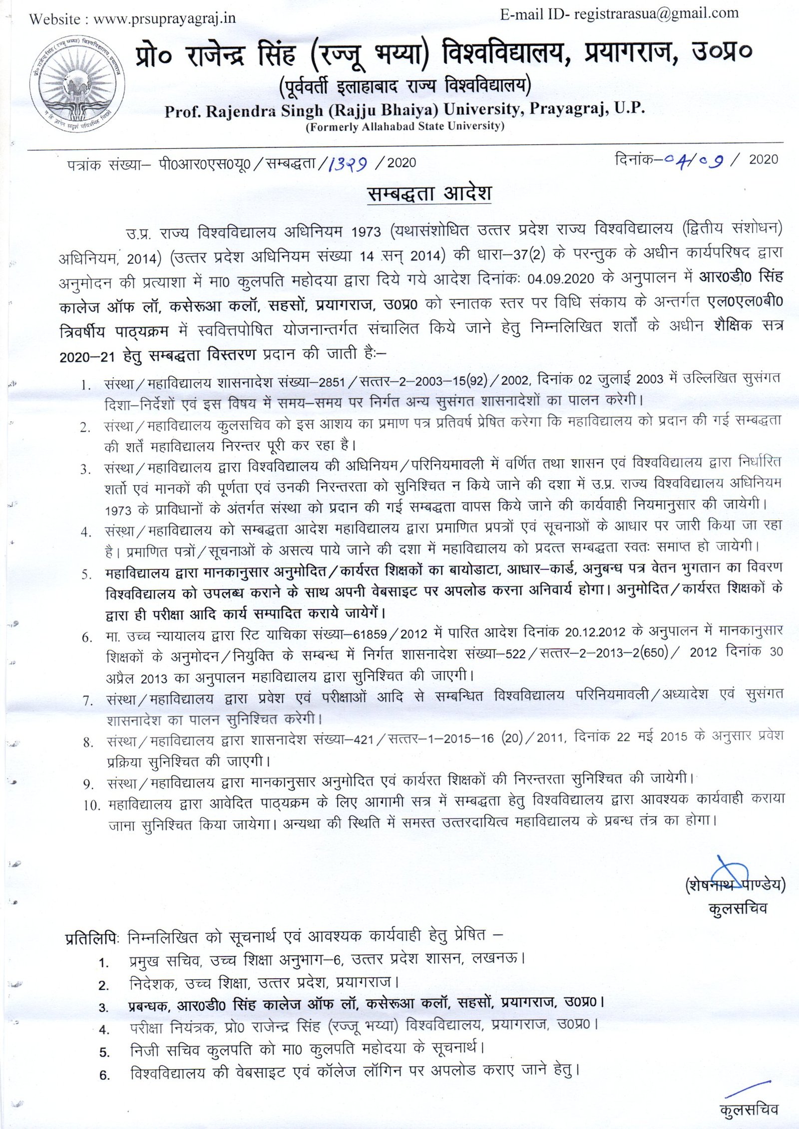 Prof. Rajendra Singh (Rajju Bhiya) Univiresity, Prayagraj