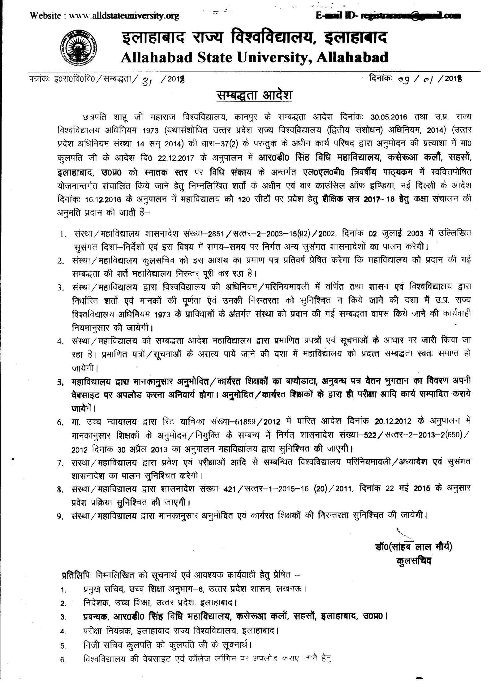 AFFILIATION LETTER 2016-17 & 2017-18